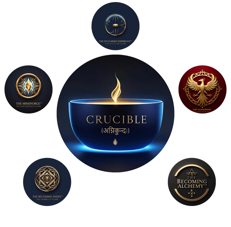 Crucible™ (अग्निकुन्दः) is an identity transformation engine and the world’s first applied Ontotectonic forge, where controlled structural rupture and reconstitution of identity are executed under governed conditions.